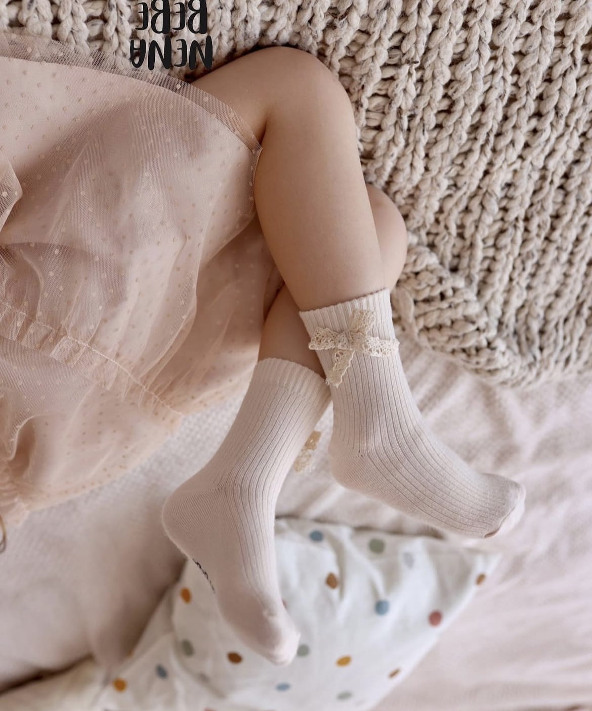 Skarpety prążkowane zdobione cudowną ażurową kokardką nadającą efekt. Idealnie wpasują się w stylizacje ze spodniami jak i również będą pasować do sukienki !