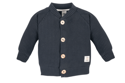Rozpinany sweter wykonany z dzianiny wafel. Swobodny krój zapewnia dziecku komfort noszenia i nie krępuje ruchów podczas zabawy. Wygodne rozpięcie umożliwia wygodne ubieranie malucha. Na naszej stronie również dostępne spodnie do kompletu.